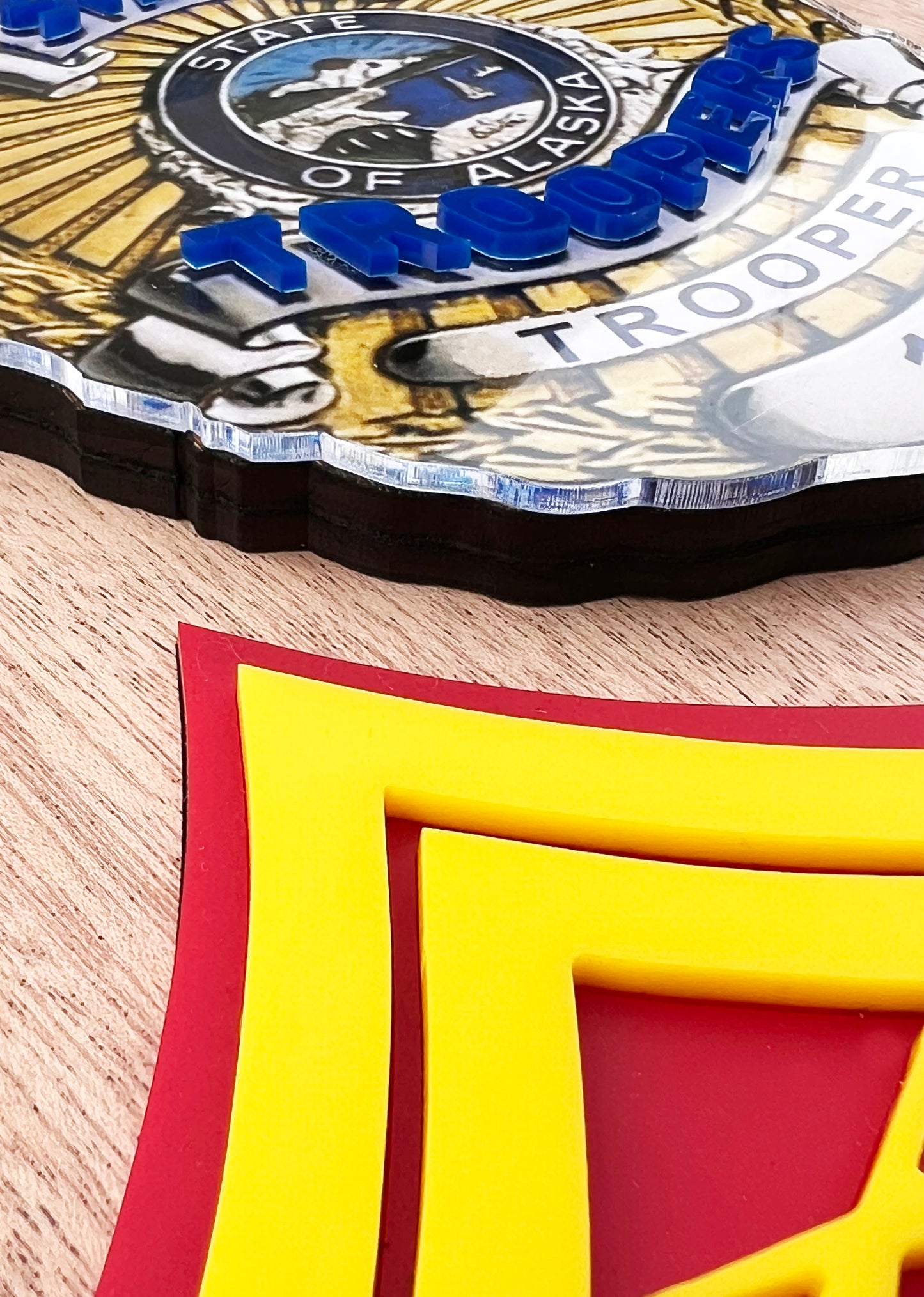 * Military ranks are laser cut from 1/8" acrylic, are glued together, and the colors vary depending on what military branch of service that you choose.