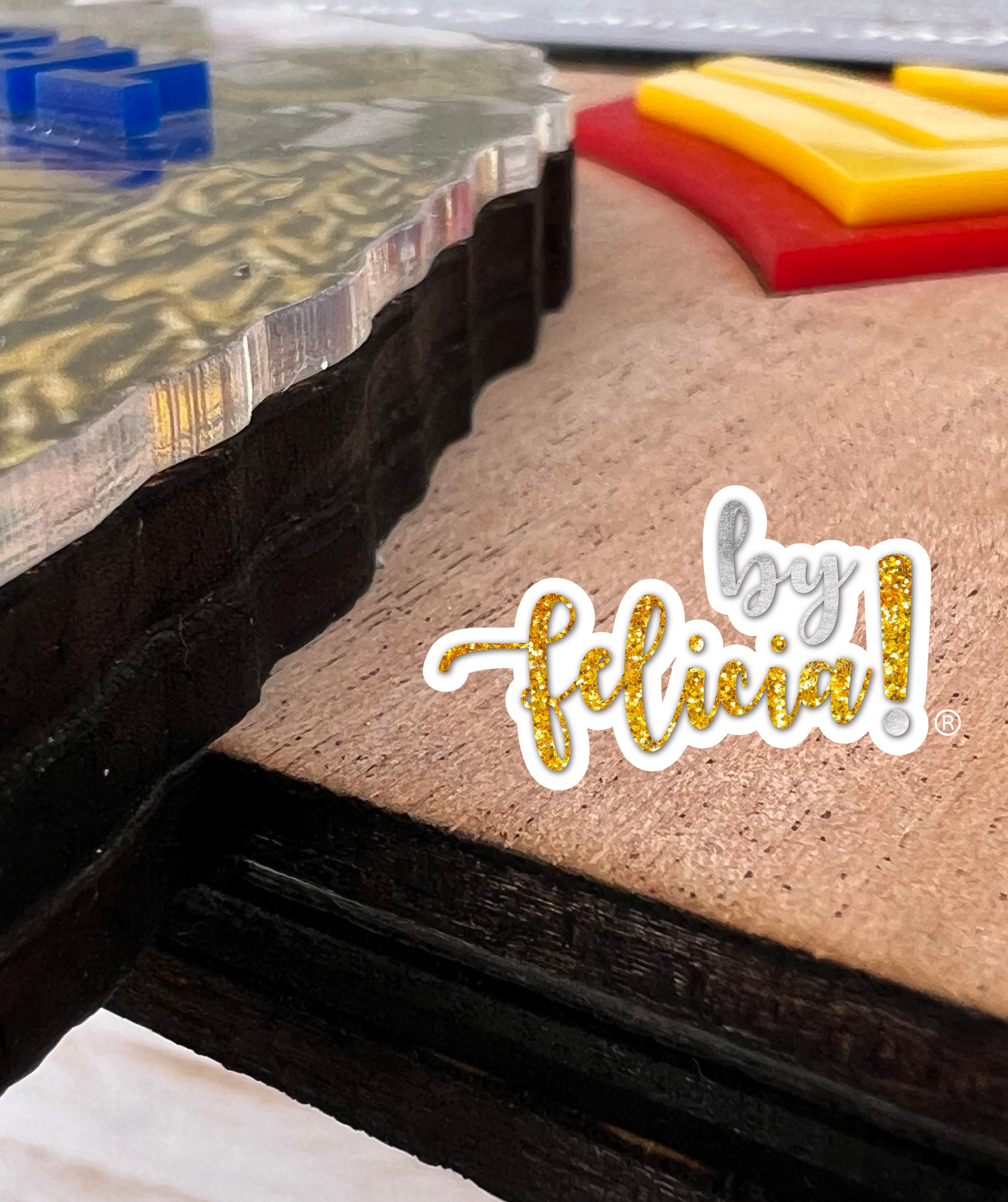 * Made from layered birch plywood, epoxy, acrylic, and high gloss sticker paper.